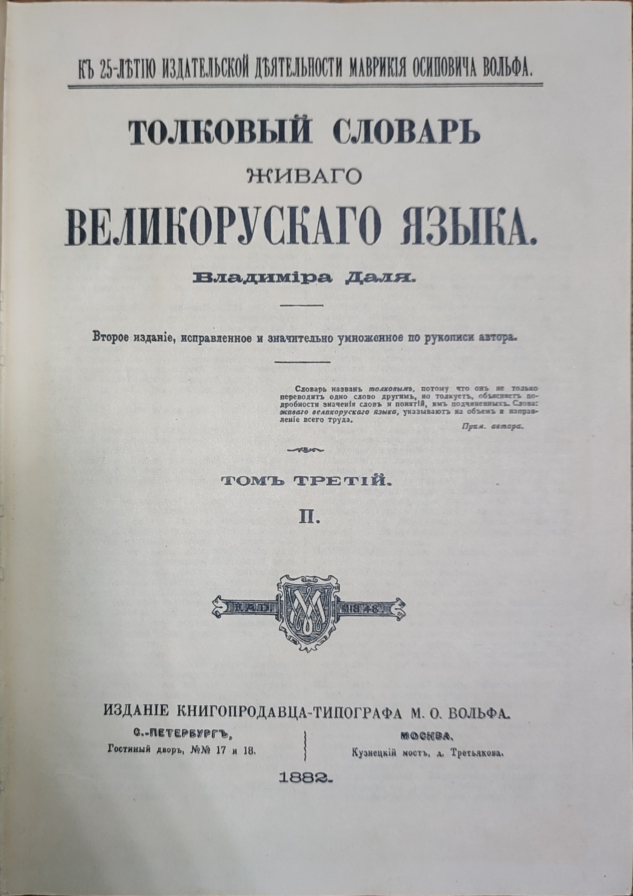 «Словарь – это не просто книга, он собой завершает и одновременно предвосхищает множество книг, он подводит итог развитию языка и прокладывает ему пути в будущее».